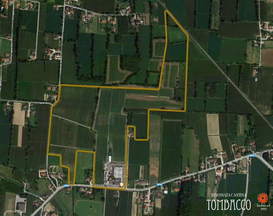 Tombacco家族的酒莊位於 Veneto 大區的中心:Trebaseleghe 葡萄園,20公頃,土壤為粉質土,氣候濕潤。出產的葡萄酒口感圓潤,酸度較低。龍卡德葡萄園,40公頃,土壤為黏土,肥沃且富含礦物質。非常適合釀造酒體飽滿、風味濃鬱的葡萄酒。帕埃塞葡萄園,20公頃,土壤為石土,有助於提高葡萄酒的酒精度。